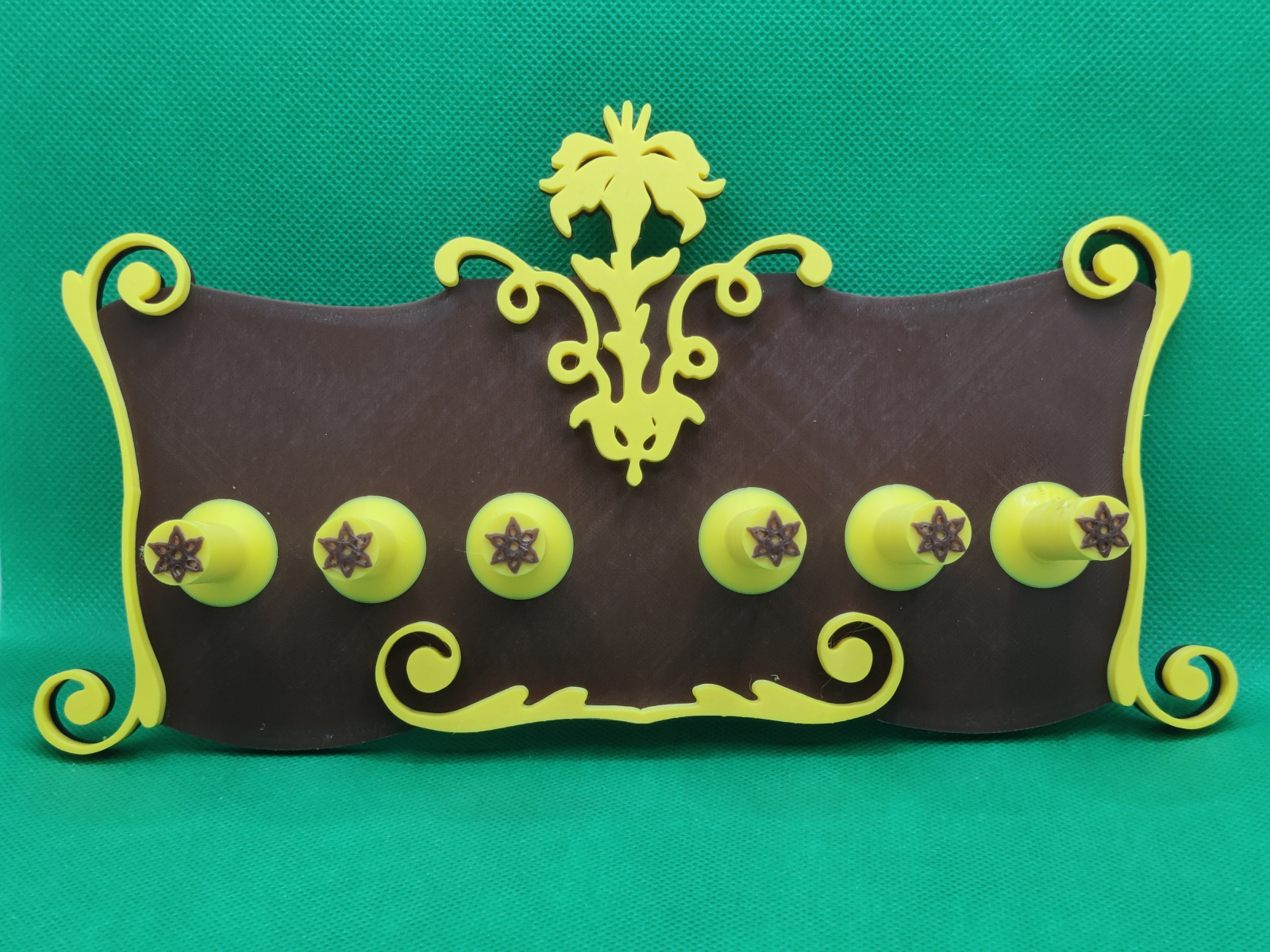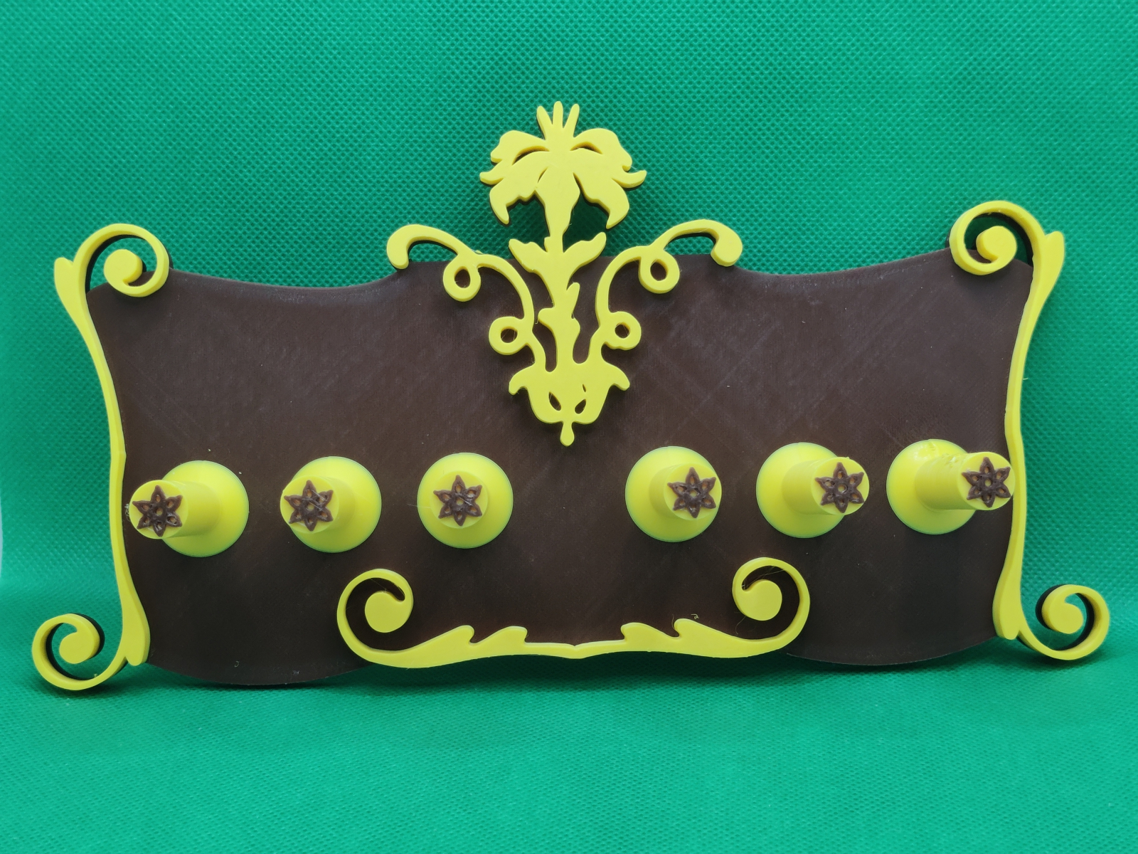 Descoperă suportul de chei Royal – o capodoperă modernă printată 3D, creată pentru a transforma organizarea cotidiană într-o declarație de stil! Finisajul sofisticat în negru intens, accentuat de detalii vibrante în galben, conferă o notă de eleganță și modernitate oricărui spațiu, de la holul de acasă până la biroul tău.